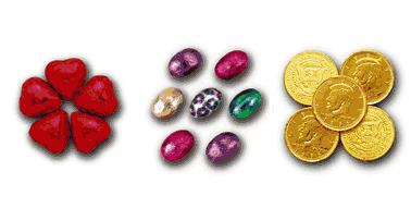coins, bunnies, eggs, stars, ducks, and bears. Our products are wrapped in